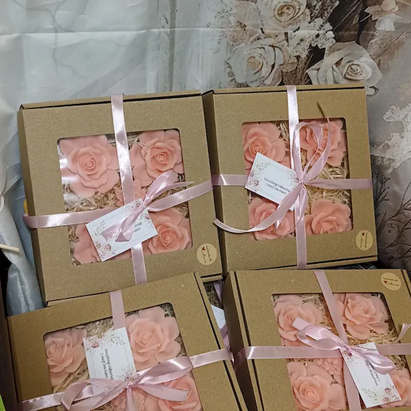W zestawie znajdują się cztery mydlane róże oraz ozdobny kwiat, które nie tylko zachwycają wyglądem, ale także pielęgnują skórę. Naturalne mydło glicerynowe jest łagodne i nawilżające, a jego subtelny zapach dodaje przyjemności podczas każdej kąpieli.