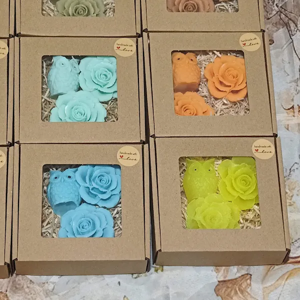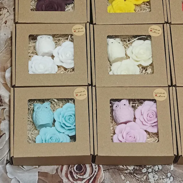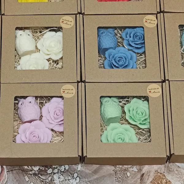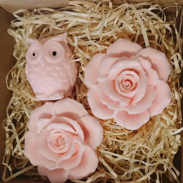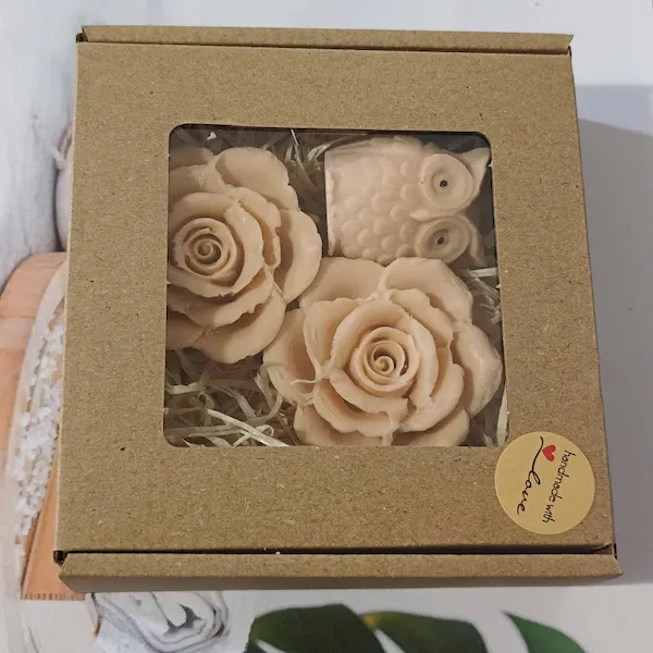 Mini mydełka naturalne glicerynowe – Zestaw 2 róże i sowa