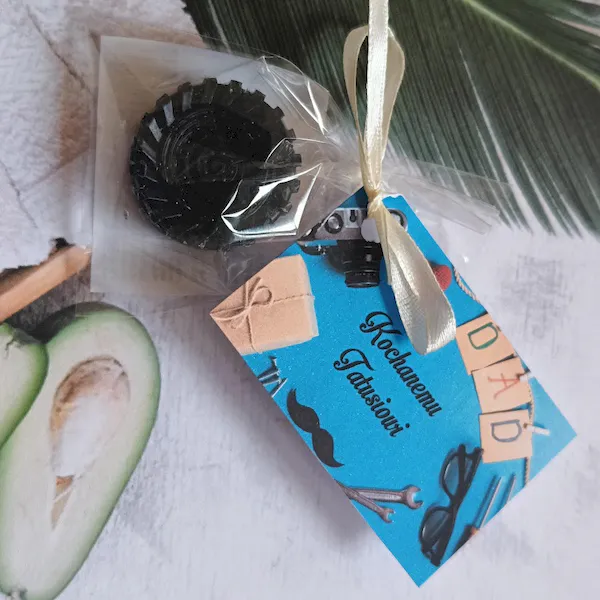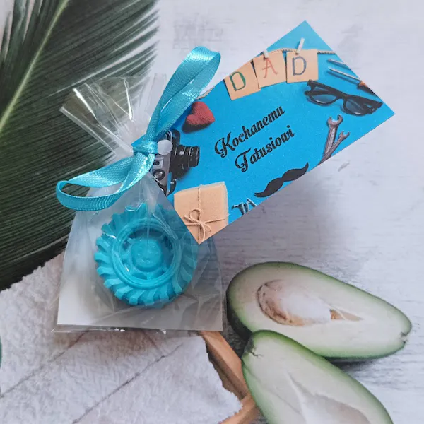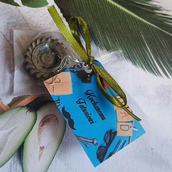 Mini mydełko glicerynowe „Opona” z bilecikiem na Dzień Taty – prezent z dedykacją