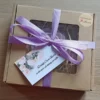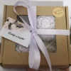 W zestawie z piękną woskową wegańską z wosku sojowego świecą Całośc zapakowana w pudełko o wymiarach 14x14x4 cm, wyściółka wełna drzewna, spersonalizowany bilecik z dedykacją