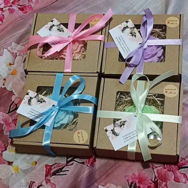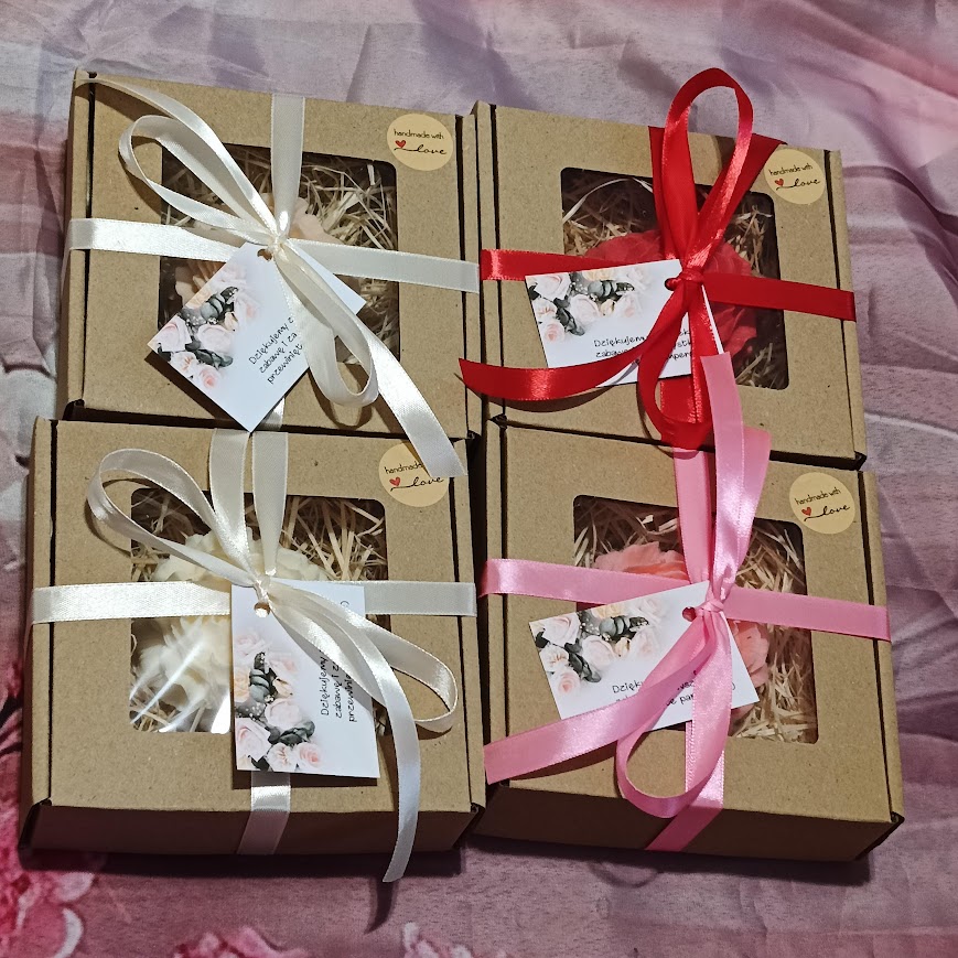 Mini mydełka 4 róże i hortensja na prezent Dzień Nauczyciela podziękowania w pudełku