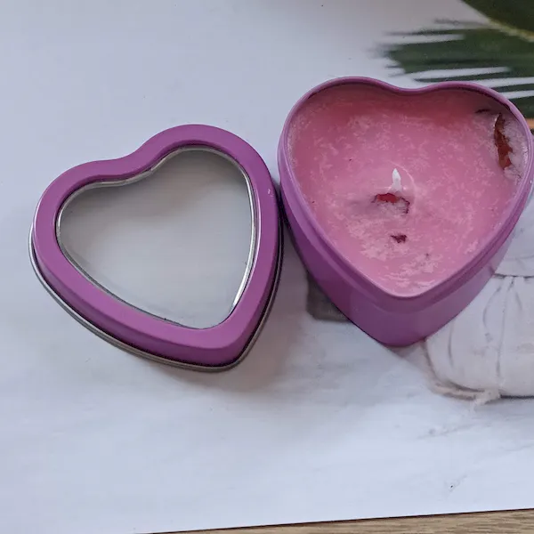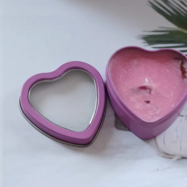 Świeca różana sojowa w puszce w kształcie serca naturalna