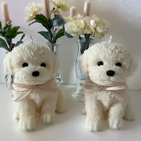 Ta urocza świeca sojowa w kształcie pieska została wykonana ręcznie z naturalnego, wegańskiego i ekologicznego wosku sojowego. Jest nie tylko śliczną dekoracją, ale również cudownym pomysłem na prezent – na urodziny, parapetówkę, święta, a także dla dzieci lub jako ozdoba do pokoju.