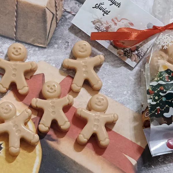 Ciepły, pachnący zimą zestaw pięciu naturalnych mydełek glicerynowych w kształcie wesołych pierniczków to gotowy, elegancki upominek dla firm, szkół i przedszkoli. Każde mydełko wykonujemy ręcznie z najwyższej jakości roślinnej gliceryny, dzięki czemu jest delikatne, nawilżające i bezpieczne nawet dla najmłodszych.